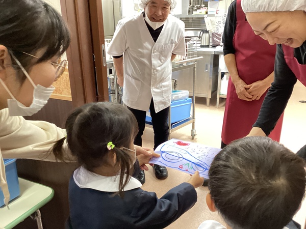 いつもおいしいお昼ご飯を作ってくれる調理員さんたちに、年少さんがありがとう♡の気持ちをプレゼントしたよ(^^)
